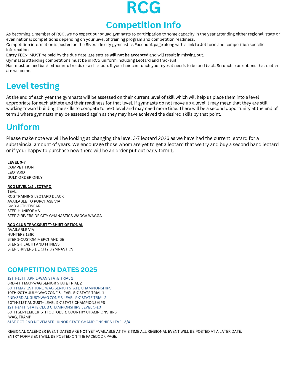 There will be an offer of a 5% early bird discount on term fees only for gymnasts training 9hrs per week or more.